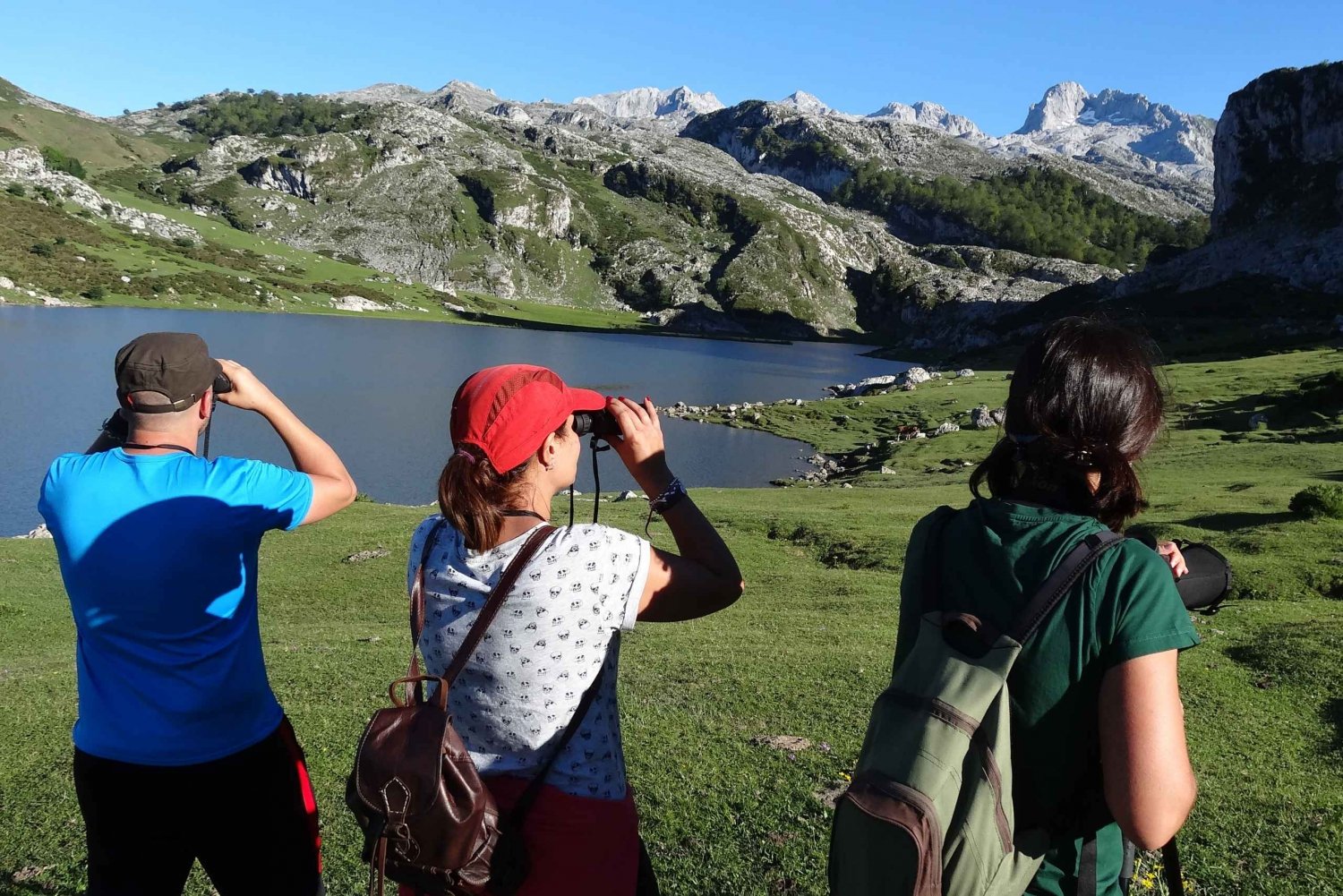 Du vil få nogle oplysninger om denne nationalpark og de vilde dyr, der lever i den. Du vil opdage, hvordan søerne blev skabt, og du vil kunne se Las Vegas, hvor hyrderne laver den berømte Gamoneu del Puerto ost om sommeren. Vi gør også holdt ved Mirador de la Reina. Herfra kan du, mens du prøver at få øje på gribbe med den medbragte kikkert, lære om genindførelsesprojektet for skæggribben, en art, der forsvandt fra disse bjerge i 50'erne i sidste århundrede, og som vi takket være NGO'en Foundation for the Conservation of the Bearded Vulture igen kan se flyve fra dette udsigtspunkt. Derefter vender vi tilbage til Cangas de Onís, og vi har brugt ca. 3,5 timer på vores tur til denne nationalpark.Includes