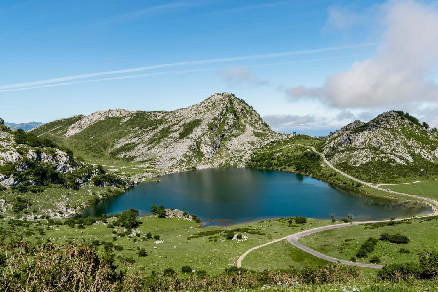 カンガス・デ・オニスからケーブルカー(料金込み)でブルネスを訪れ、コバドンガ湖を見学します。村、ナランホの展望台、ピコス・デ・ヨーロッパの独特な景観を自由に楽しむ時間もあります。
