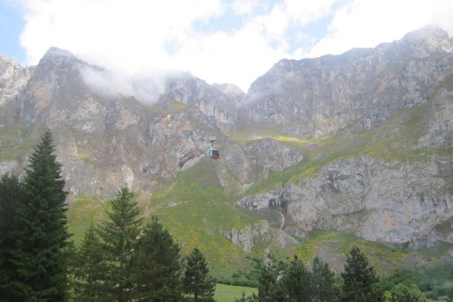 Opplev spenningen ved å ta taubanen Fuente Dé opp til 1823 meters høyde i hjertet av Picos de Europa nasjonalpark. På litt under fire minutter når du toppen, hvor en panoramautsikt over de kantabriske fjellene venter. Turen gir et unikt perspektiv på de forrevne toppene og de frodige dalene nedenfor. Når du ankommer den øverste stasjonen, kan du utforske utsiktsbalkongen som vender mot sør og gir en fantastisk utsikt over det sentrale fjellmassivet, kjent som Urrielles. Ta en avslappende pause på kafeen 'El Cable', som har plass til opptil 150 gjester, eller besøk kafeen 'Fuente Dé' på den nedre stasjonen, som har plass til 200 gjester. Begge tilbyr et utvalg av lokale snacks og drikkevarer for å gjøre besøket ditt enda bedre. Opplevelsen avsluttes på den øverste stasjonen, slik at du kan utforske de omkringliggende stiene eller bare nyte det fantastiske landskapet før du går ned igjen på egen hånd.Includes