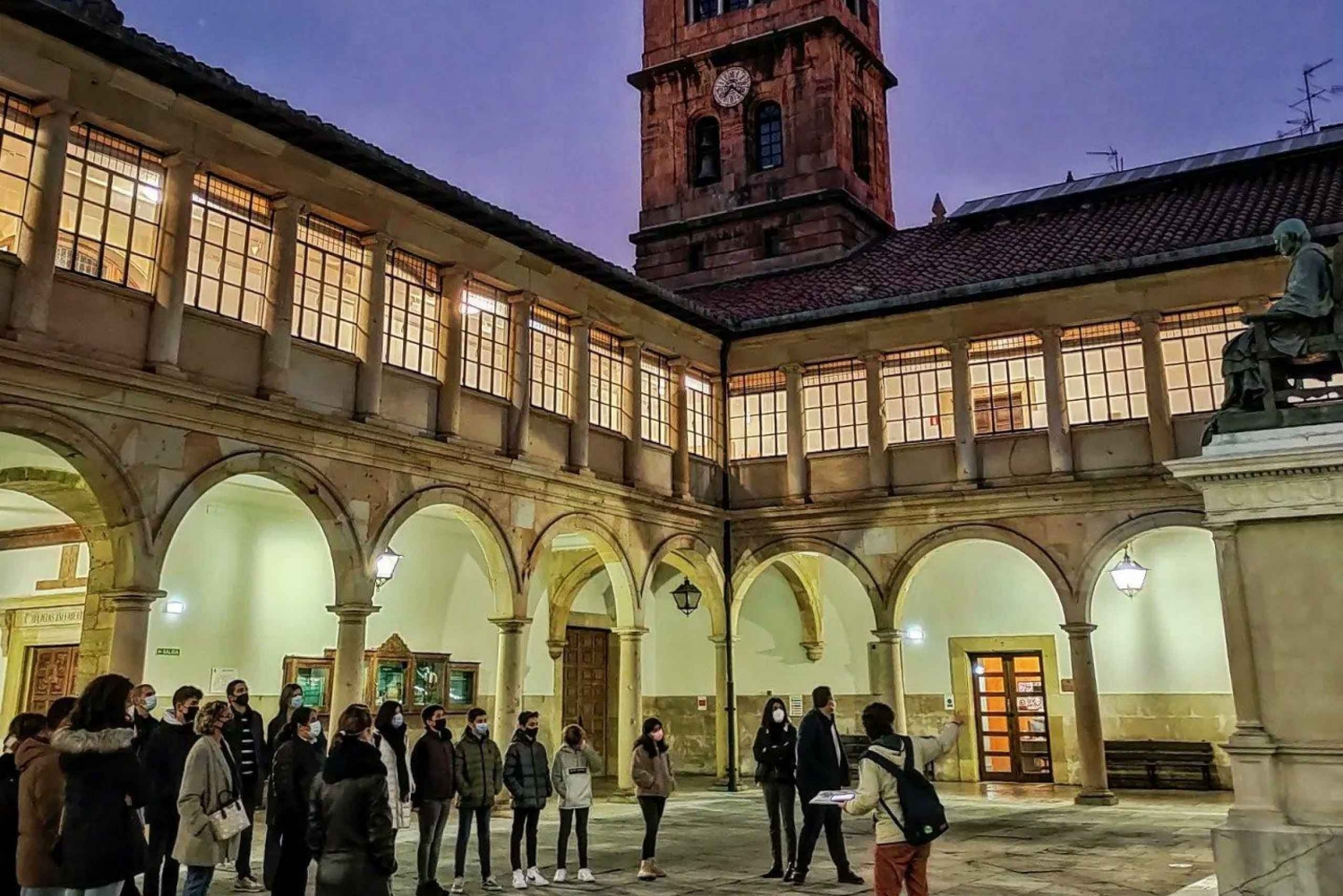 Sob os pés da torre da catedral, ouvirás a maldição de Oria, o primeiro exorcismo medieval documentado. Desvendaremos a misteriosa origem do Santo Sudário, guardado na enigmática Câmara Santa, e à sombra da sua antiga muralha ou da igreja de San Tiso recordaremos algumas antigas lendas dos reis asturianos. Para além do Arcu de Cimavilla, tentaremos compreender as chaves da relação do lugar com o mundo da bruxaria, enquanto em El Fontán nos esperam histórias de horrÃveis afogamentos na sua antiga lagoa. Finalmente, aos pés do Palácio do Campusagráu ou da Universidade, abordaremos as lendas sobre certos seres da mitologia asturiana presentes em Oviedo/Uvieo. Poucos carbayones sabem que Oviedo-Uvieo serviu de esconderijo a alguns dos mais sanguinários criminosos nazis. Conheceremos a vida intrépida de um deles, que morreu em 2001! Mas também passaremos em revista as principais intrigas e tragédias testemunhadas pelo Palácio de la Rúa, uma das torres medievais mais antigas das Astúrias e que ainda esconde muitos segredos. Noutros locais, como a rua Azcárraga ou o sombrio bairro de Socastiello, esperam-nos testemunhos arrepiantes (e divertidos) de fantasmas, pelos quais até o famoso investigador paranormal Iker Jiménez se interessaria. Este percurso foi concebido e dirigido pelo historiador Denis Soria desde 2020. Somos guias oficiais acreditados nas Astúrias. Escolhe o autêntico!Includes